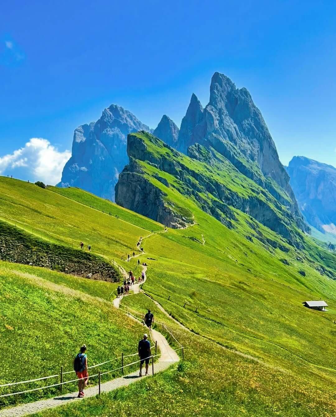 Val Gardena’s tourism board says that “the Seceda is one of the most famous photo spots in the Dolomites.” Walking a little lower down gives you cleaner frames with fewer people.