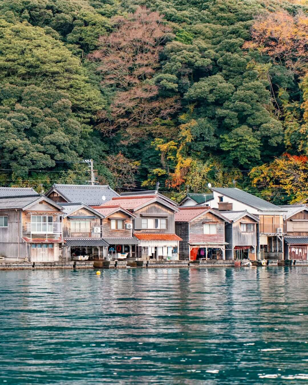 In the small fishing village of Ine, Kyoto Prefecture, the ocean lives right beneath your feet. The wooden boathouses (funaya) reflect perfectly in the still bay.