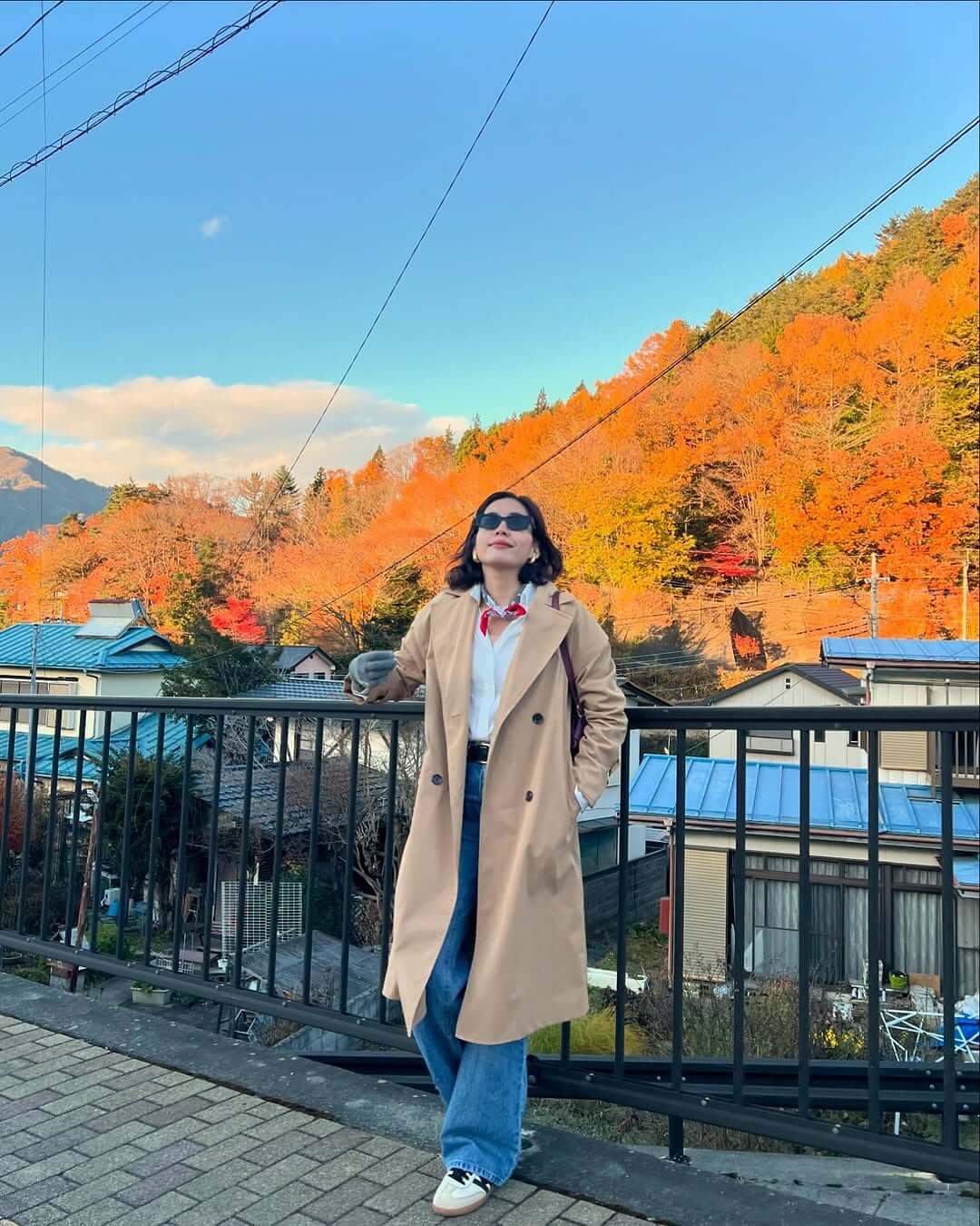 When the maple leaves turn, the wardrobe softens too. Live Japan notes that earthy tones — greens, browns, and yellows — match Japan’s momiji (fall foliage) season. Layer light sweaters and scarves for outdoor strolls.