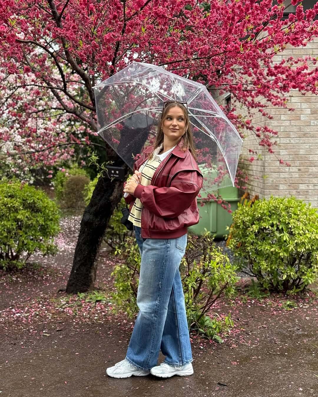Cherry blossom season brings mild air and pastel scenery. According to Japan Travel, “thin short-sleeved shirts, sundresses, or any clothing made with breathable fabric” work perfectly. Shorts are fine for sightseeing but should be avoided at shrines or temples.