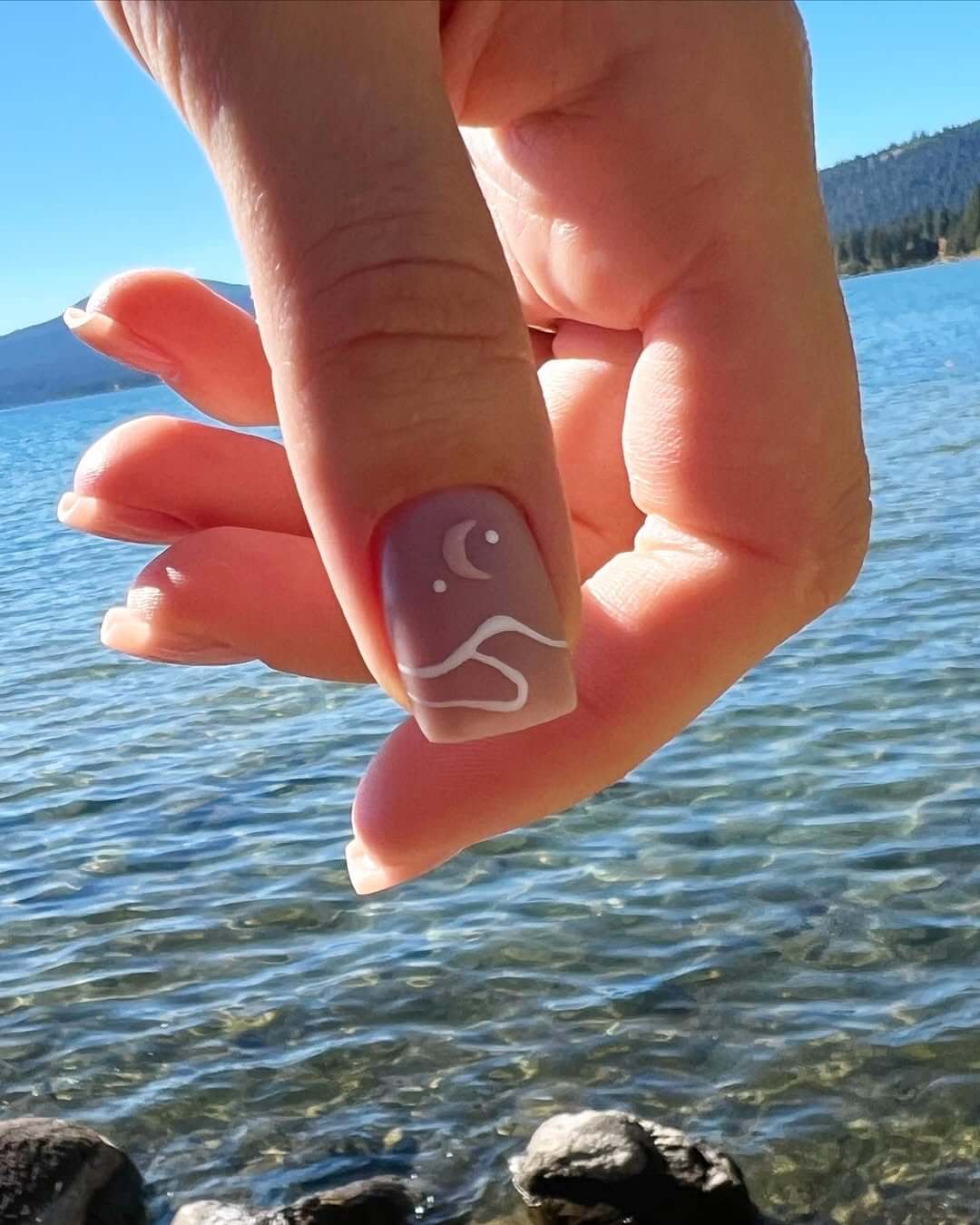 - Gold dust accents: A streak of shimmer polish mirrors the way sunset light hits the water.